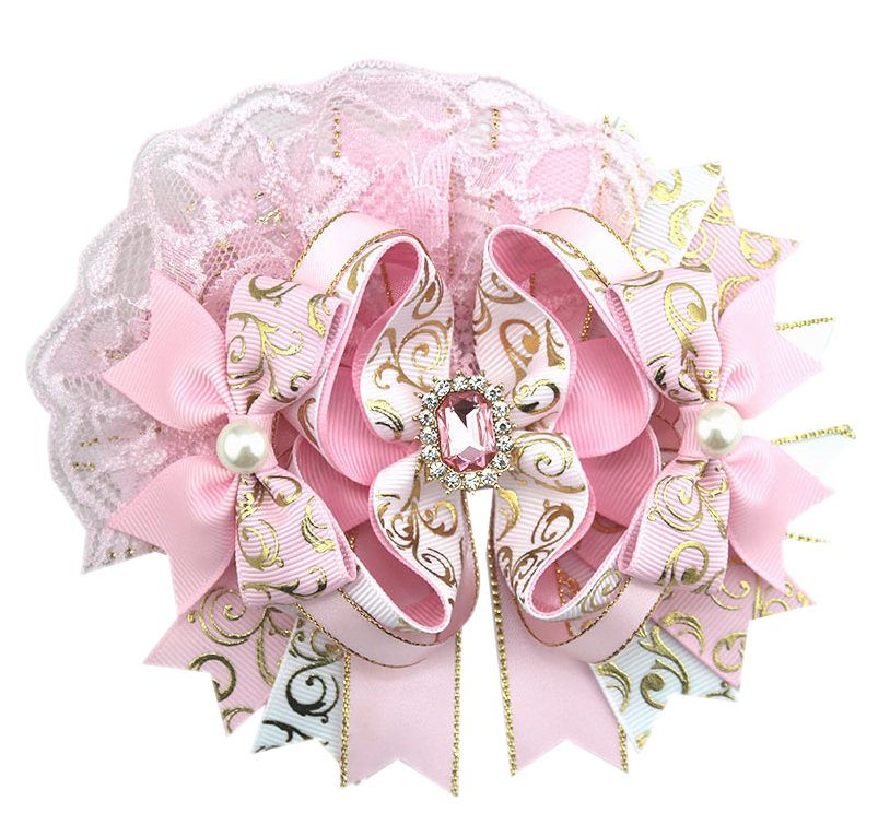 Step into the spotlight with our Handmade Pink & Gold Regal Lace Boutique Bow 🌸👑✨